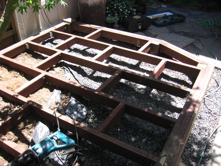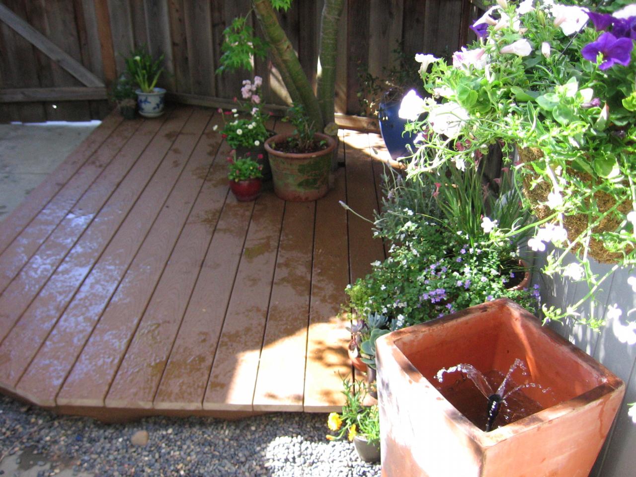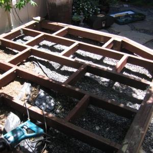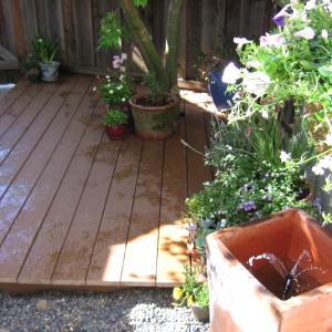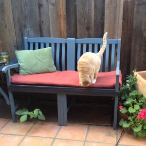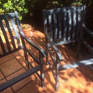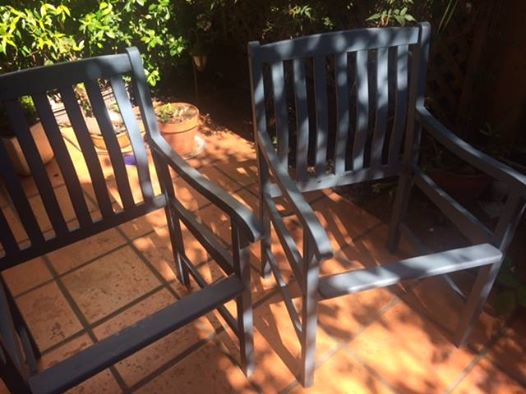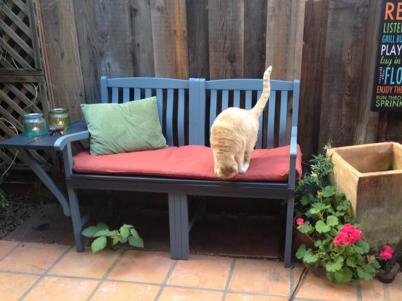 I received three well-used patio chairs that had fallen apart. I turned them into a garden bench with attached tabletop.