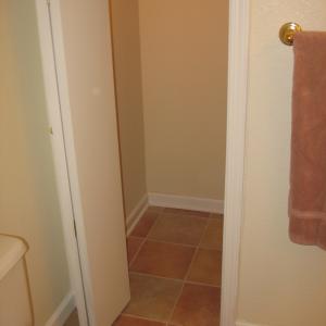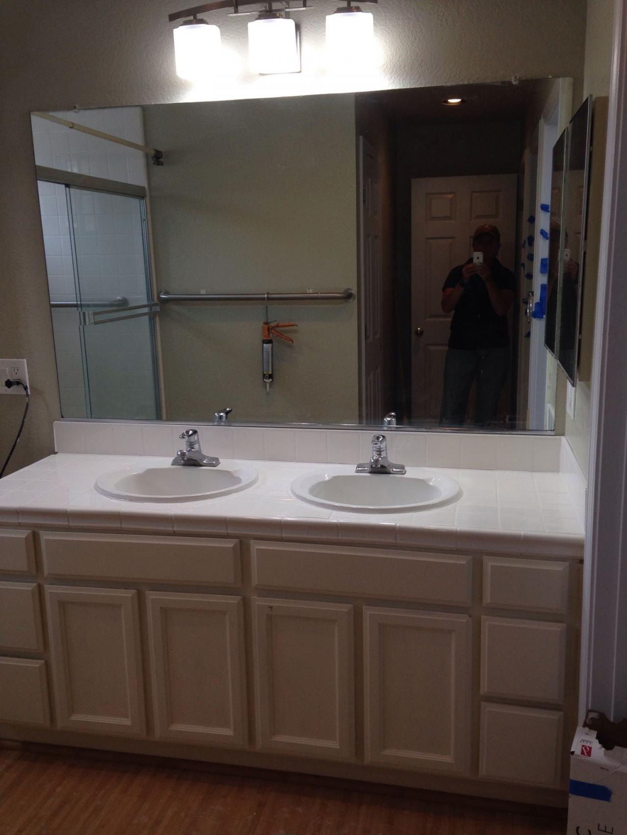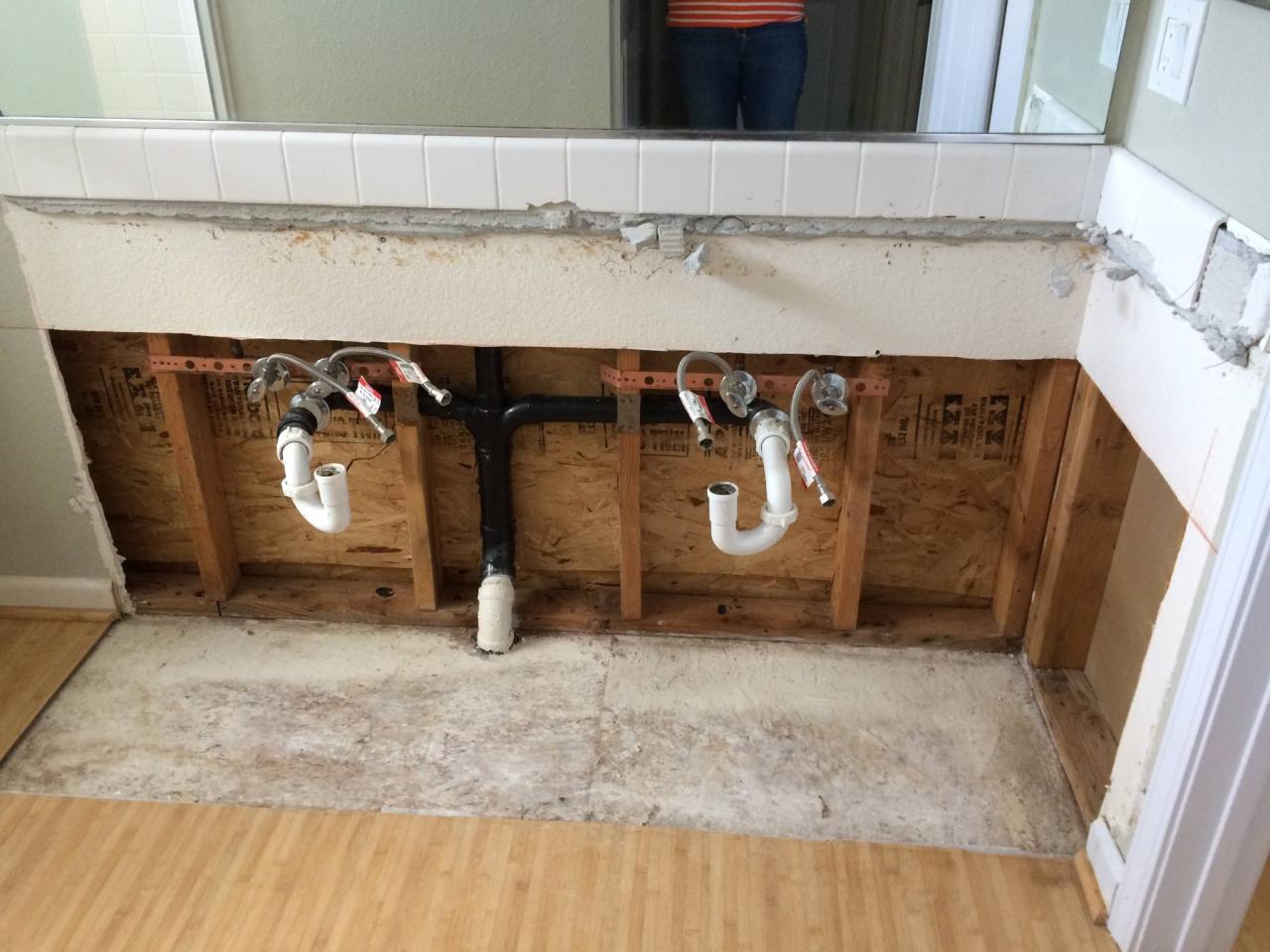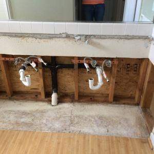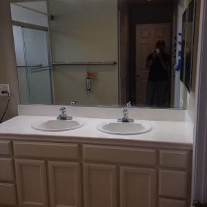 A new client had extensive water damage in a bathroom vanity. The image on the right is how the bathroom looked when I first saw it. The only useable vanity components that remained were the sinks, faucets, drawers and doors. It was an interesting project to build the cabinet and faceframe within the original footprint, so the floor wouldn't have to be redone. I installed the tile and reinstalled the plumbing to finish the job.