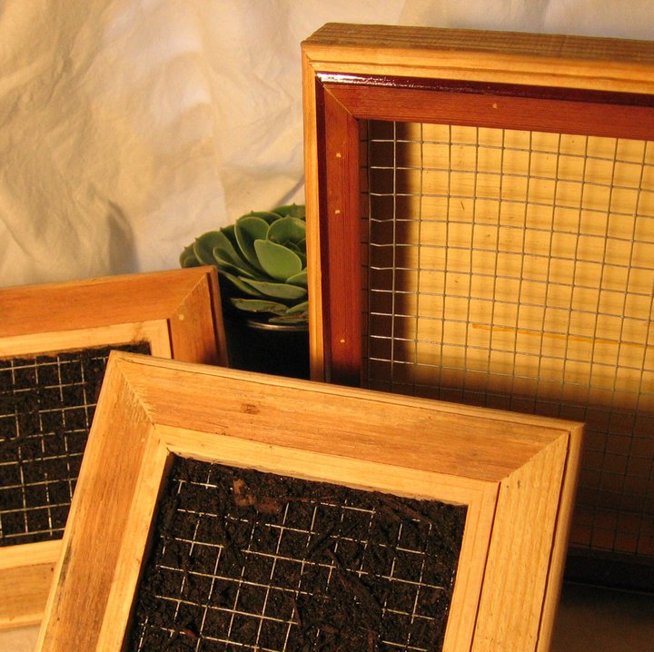 The vertical cacti gardens shown here were made from scrap lumber I had on hand. The boxes were planted with cacti cuttings and once the plants had enough time to 'root' in the soil, the boxes were hung on walls.